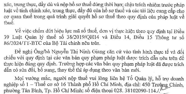 Kính thưa Bộ Tài chính, Chi nhánh Công ty TNHH Dicentral Việt Nam (Mã số chi nhánh: 0304155502-001; Địa chỉ: Số 7 Cửu Long, Phường Tân Sơn Hòa, TP Hồ Chí Minh) đã thực hiện nộp hồ sơ giải thể và đề nghị đóng mã số thuế từ năm 2014. Tuy nhiên, đến nay thủ tục vẫn chưa được hoàn tất. Trong giai đoạn hiện nay, toàn bộ nhân sự phụ trách thời điểm năm 2014 (bao gồm cả người đại diện theo pháp luật trước đây) đã nghỉ việc, dẫn đến việc rà soát hồ sơ, ký tá và bổ sung chứng từ gặp nhiều khó khăn. Đồng thời, do doanh nghiệp đã nhiều lần thay đổi địa điểm văn phòng, nên phần lớn hồ sơ, chứng từ đã nộp trước đây hiện đã thất lạc và không còn lưu trữ. Bao gồm: Giấy Chứng nhận đăng ký hoạt động chi nhánh, các hồ sơ đã nộp cho cơ quan thuế liên quan đến giải thể và đề nghị chấm dứt mã số thuế chi nhánh. Để đảm bảo việc chấm dứt hoạt động chi nhánh và thực hiện nghĩa vụ thuế đúng quy định pháp luật, Công ty TNHH Dicentral Việt Nam kính đề nghị cơ quan có thẩm quyền xem xét, hướng dẫn cụ thể về: 1. Trình tự, thủ tục cần thực hiện để hoàn tất việc đóng mã số thuế của Chi nhánh. 2. Các tài liệu, chứng từ cần bổ sung trong trường hợp nhân sự cũ đã nghỉ việc, không thể phối hợp ký tá. 3. Hướng xử lý phù hợp đối với những hồ sơ tồn đọng từ năm 2014 đến nay. Kính mong Quý Cơ quan xem xét, hỗ trợ hướng dẫn để Công ty TNHH Dicentral Việt Nam có thể thực hiện đầy đủ, đúng quy định pháp luật về việc đóng mã số thuế Chi nhánh. Công ty xin trân trọng cảm ơn sự hỗ trợ của Quý Cơ quan.