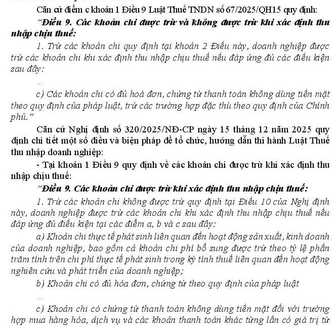 Kính gửi: Bộ Tài chính Công ty cổ phần xây dựng Tố Uyên, mã số thuế: 5300218990, địa chỉ trụ sở: Số nhà 167 đường Ngô Văn Sở, phường Lào Cai, tỉnh Lào Cai, Việt Nam Căn cứ Bộ luật lao động hiện hành Căn cứ Luật thuế TNDN số 67/2025/QH15; Căn cứ Nghị định số 320/2025/NĐ-CP ngày 15 tháng 12 năm 2025 của Chính phủ. Công ty cổ phần xây dựng Tố Uyên trao đổi và xin hỏi Quý cơ quan Bộ tài chính mấy vấn nội dung cụ thể như sau: 1.Hiện nay Doanh nghiệp chúng tôi đang thực hiện chi trả tiền lương, tiền công cho người lao động theo hình thức trả bằng tiền mặt, thu nhập của người lao động giao động từ 11.000.000đ đến 22 triệu đồng/1 tháng tùy từng người và từng vị trí công tác. Xin hỏi tiền lương, tiền công Doanh nghiệp chi trả cho người lao động bằng tiền mặt này có được tính vào chi phí hợp lý khi tính thuế thu nhập doanh nghiệp không? Nếu có thì được quy định ở đâu? Nếu không được tính vào chi phí hợp lý thì quy định ở đâu? 2.Từ Tháng 12 năm 2025 Doanh nghiệp tôi trả tiền lương, tiền công cho người lao động theo hình thức 03 lần/1 tháng cụ thể: - Lần 1 vào ngày mùng 10 hàng tháng số tiền: 4.990.000đ bằng tiền mặt có phiếu chi tiền mặt. Xin hỏi số tiền 4.990.000 đồng chi trả bằng tiền mặt có được tình là chi phợp lý không ? - Lần 2 vào ngày 20 hàng tháng số tiền: 4.990.000đ bằng tiền mặt có phiếu chi tiền mặt. Xin hỏi số tiền 4.990.000 đồng chi trả bằng tiền mặt có được tình là chi phợp lý không ? - Lần 3 vào từ ngày 31 hàng tháng số tiền: 11.000.000đ bằng tiền mặt có phiếu chi tiền mặt. Xin hỏi số tiền 11.000.000 đồng chi trả bằng tiền mặt có được tình là chi phợp lý không ? * Việc chi trả nêu trên được thực hiện theo thỏa thuận 2 bên, giữa Doanh nghiệp với người lao động, các lần thanh toán bằng tiền mặt có đủ chứng từ: bảng thanh toán lương, bảng chấm công, phiếu chi lương cho người lao động. Vậy kính mong Quý ban cơ quan tạo điều kiện giúp đỡ và hướng dẫn chính sách thuế cho đơn vị thực hiện tốt nghĩa vụ thuế. Công ty xin chân trọng cảm ơn Quý cơ quan./.